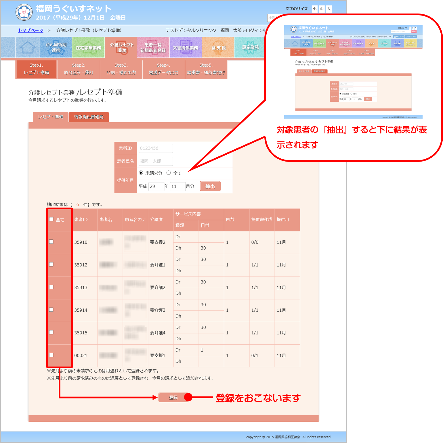 レセプト準備画面では、今月請求する患者をリストアップすることができます。
