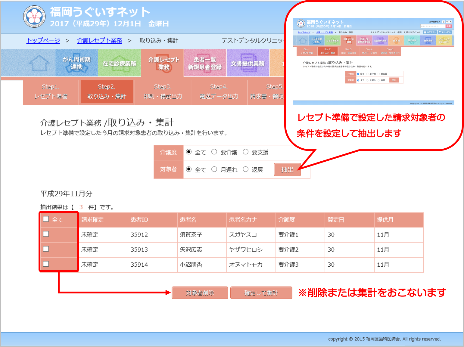 step1で準備し取り込んだ患者が一覧で表示されます。