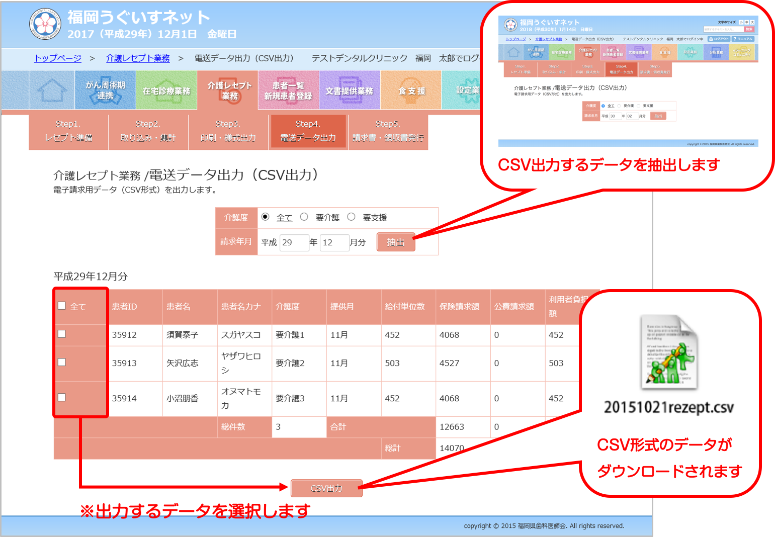 出力されたデータは、各自請求方法に則ってご利用ください。