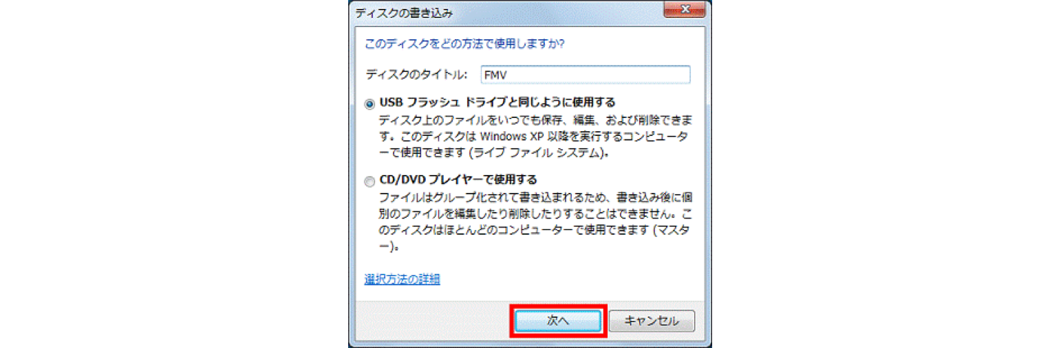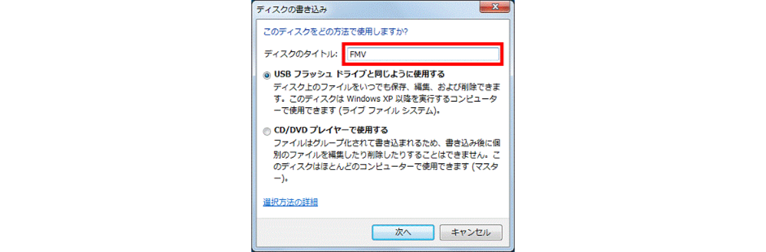 「ディスクのタイトル」欄に、このディスクに付ける名前をお好みで入力します。