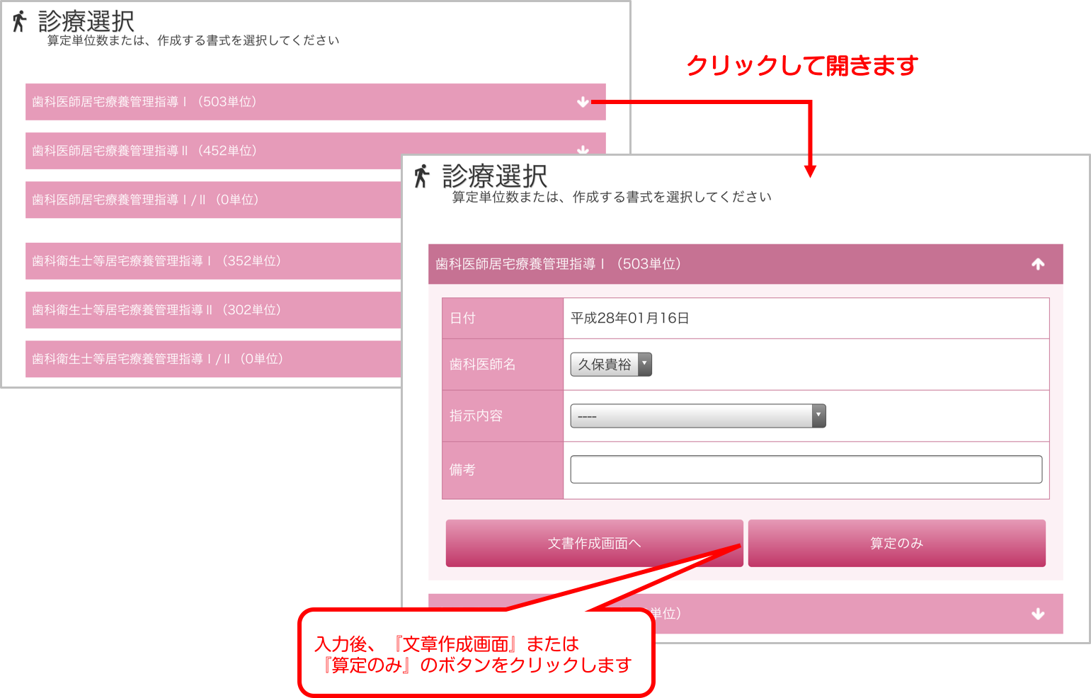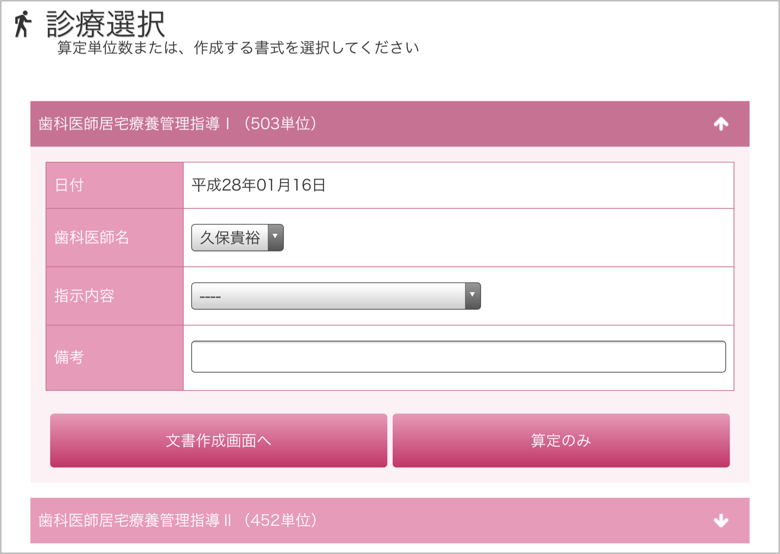 「算定のみ」・・・カルテ(PC版に表示)に算定内容が反映されます。
