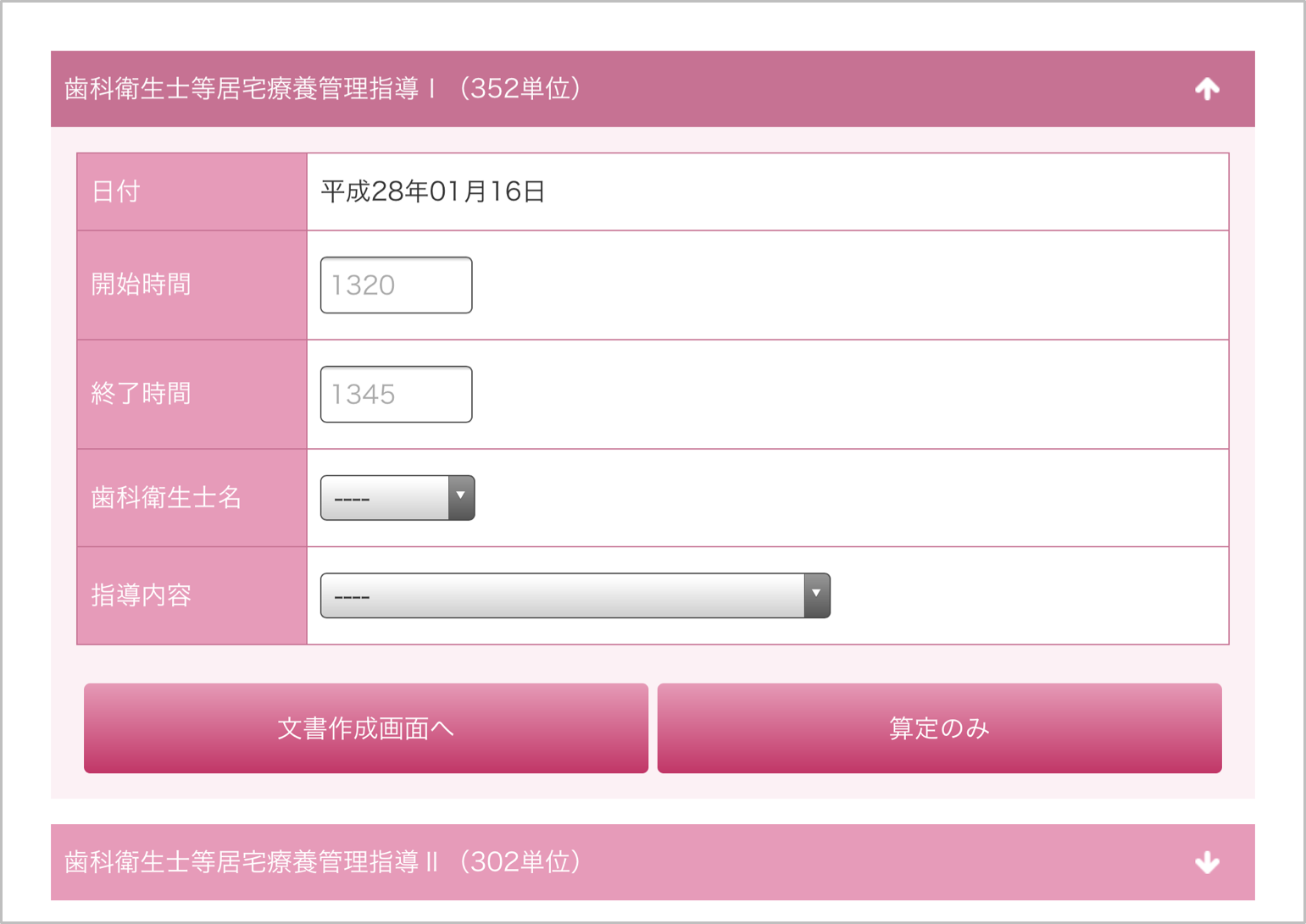 歯科衛生士の算定の場合は、開始時間、終了時間を入力します。