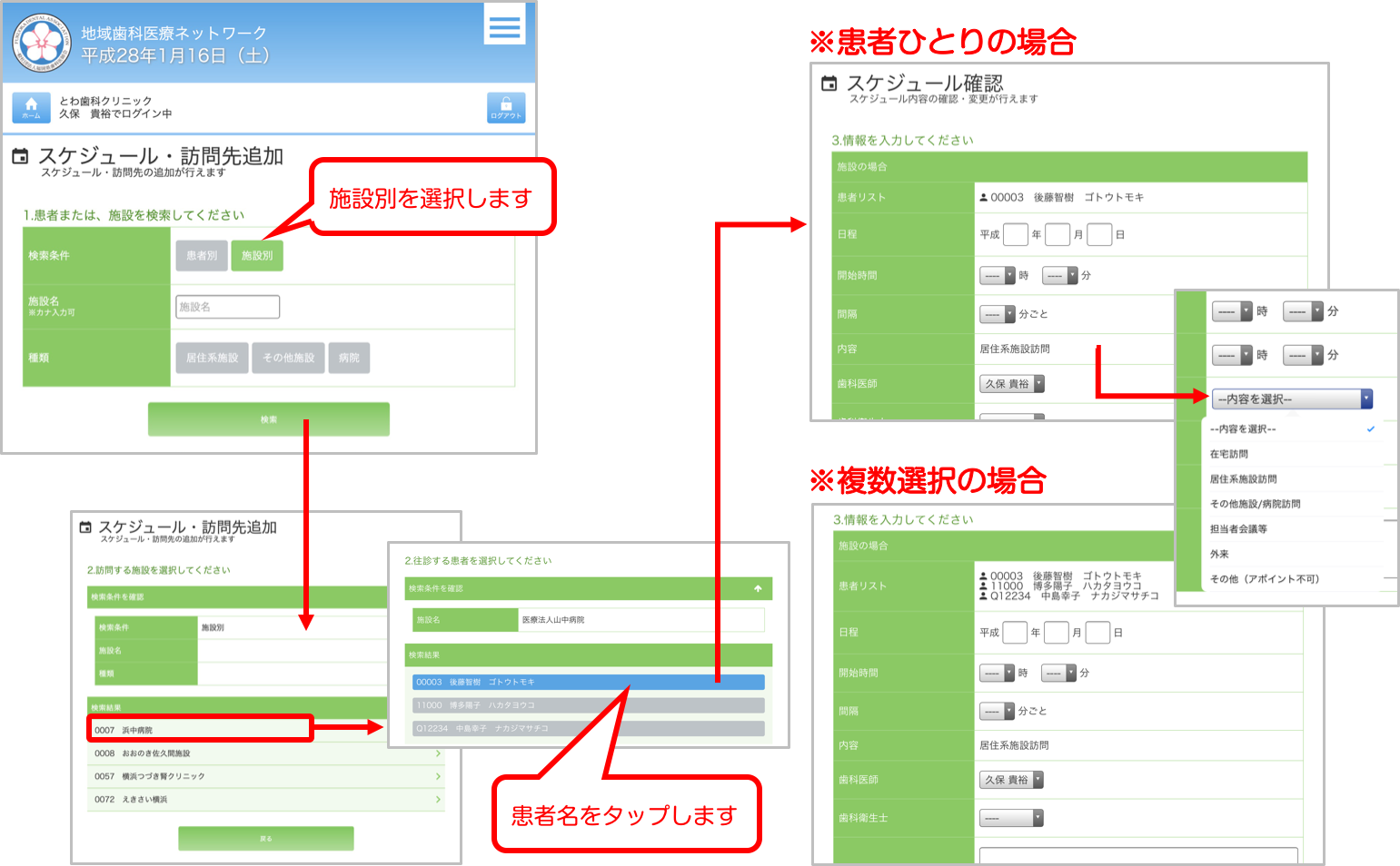 - 105:訪問先追加(施設別)